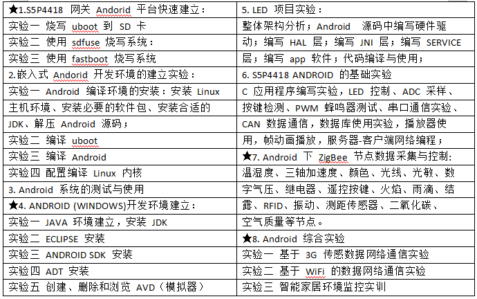 7、基于 WiFi/BT 的網(wǎng)絡(luò)通信開發(fā):可以開展 WiFi/BT 通信原理、WiFi/BT 模塊驅(qū)動開發(fā)、WiFi/BT 模塊原理設(shè)計、WiFi/BT 互聯(lián)網(wǎng)接入、WiFi/BT 移動通信與物聯(lián)網(wǎng)應(yīng)用開發(fā)等。