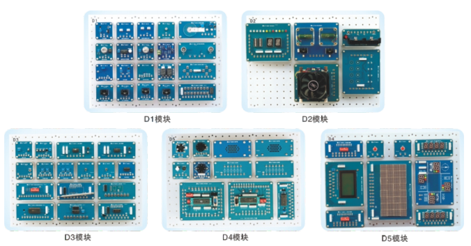 本設(shè)備是將實(shí)際應(yīng)用中單元電路模塊化。學(xué)生通過模塊間的搭接,很方便就能搭建成各種實(shí)際產(chǎn)品,模塊搭成產(chǎn)品的范圍涉及家電,工業(yè),無線等方面內(nèi)容。單元模塊電路包括傳感器,信號處理,顯示,執(zhí)行本體,接口電路,微處理器等模塊。模塊都采用透明盒裝配,模塊間采用排插和接線柱連接,使實(shí)訓(xùn)模塊能夠靈活按教學(xué)要求或競賽要求搭建成各種實(shí)際產(chǎn)品。