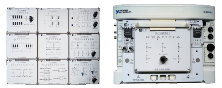 本設(shè)備是將電工電路實際應(yīng)用中單元電路模塊化。通過與NI ELVIS 結(jié)合使用,電路功能測試是通過NI ELVIS 平臺專用的轉(zhuǎn)接口進行連接,不在需要其他外部電源信號進行連接,并且電路的測量是通過NI ELVIS 平臺集成了12款常用虛擬儀器進行測量其功能參數(shù),可通過USB接口與PC連接,實現(xiàn)快速易用的測量采集及顯示,并能在統(tǒng)一平臺上實現(xiàn)多用戶多應(yīng)用,因此降低了成本。NI ELVIS可實現(xiàn)各類應(yīng)用,從而幫助各學(xué)科中不同學(xué)習(xí)進度的學(xué)生。從電路基礎(chǔ)學(xué)習(xí)到進行研究工作,都可在同一平臺上實現(xiàn)。便于教師的教學(xué)和學(xué)生的認(rèn)識,所有實訓(xùn)的內(nèi)容均由學(xué)生通過電子連接線搭接,培養(yǎng)學(xué)生的動手能力以及解決問題的能力。