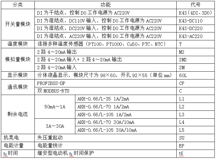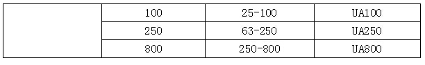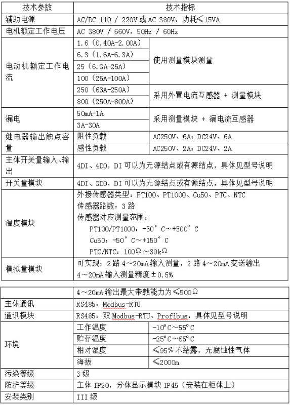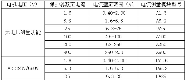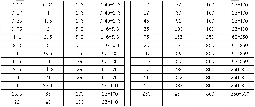 注:>250kW的低壓電動機(jī),額定電流小于800A時均可選用800A等級的電動機(jī)保護(hù)器。
