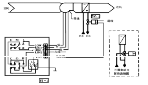 圖2 典型風(fēng)機(jī)盤管控制系統(tǒng)原理圖
