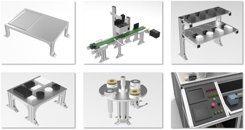 另外,模塊化機(jī)械設(shè)計(jì)是工業(yè)發(fā)達(dá)國家近二十年來一直采用的一種先進(jìn)的機(jī)械產(chǎn)品設(shè)計(jì)方法。學(xué)生自主設(shè)計(jì)臺(tái)面功能模塊可作為《機(jī)械設(shè)計(jì)》課程的綜合實(shí)驗(yàn)部分。學(xué)生根據(jù)課上所學(xué)機(jī)械原理和機(jī)械設(shè)計(jì)的基礎(chǔ)知識(shí),在三維設(shè)計(jì)軟件中實(shí)現(xiàn)自己的設(shè)計(jì)想法,可自行設(shè)計(jì)機(jī)器人末端工具,臺(tái)面工裝、生產(chǎn)流水線及視覺分揀等。學(xué)生也可組隊(duì)完成整個(gè)臺(tái)面的重新規(guī)劃,利用設(shè)備本體提供的氣路和電路總線,賦予臺(tái)面新的設(shè)計(jì)亮點(diǎn)。此部分也可作為機(jī)械設(shè)計(jì)、機(jī)械制造、機(jī)電一體化、工業(yè)設(shè)計(jì)等專業(yè)的畢業(yè)設(shè)計(jì)內(nèi)容。此工作站整體外形統(tǒng)一,具有外部通訊接口,所以有配置靈活、便于擴(kuò)展的優(yōu)點(diǎn)。各工作站既可以作為獨(dú)立的功能個(gè)體,完成機(jī)器人的實(shí)訓(xùn)任務(wù)。也可以作為相互的擴(kuò)展模塊,通過電纜緊密拼裝后組成一個(gè)整體的結(jié)構(gòu)。某一個(gè)工作站作為主控,其他工作站協(xié)同。通過之前所述不同的設(shè)計(jì)賦予每個(gè)工作站不同的功能, 可添加節(jié)拍控制、生產(chǎn)管理、工業(yè)系統(tǒng)工程等管理思路,使其整體實(shí)現(xiàn)更加多元化的功能。
