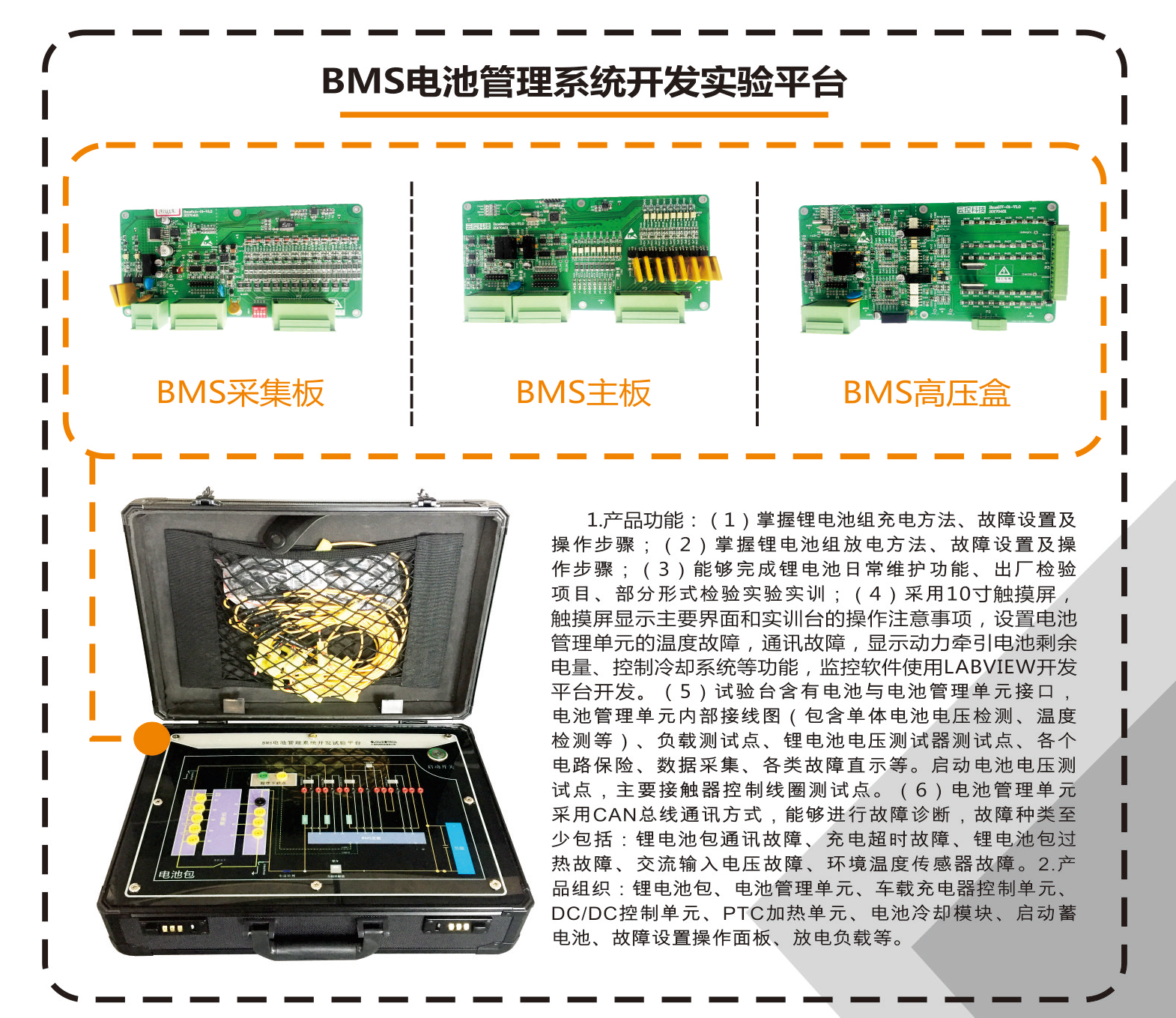 BMSPACK組裝實(shí)驗(yàn)臺 技術(shù)要求: 1. 實(shí)訓(xùn)臺采用高性能嵌入式數(shù)字電池電路板,故障模擬板,ARM核心主控板,車用磷酸鐵鋰動力電池,臺架動力電池組采用24節(jié)單體電池串聯(lián)組...