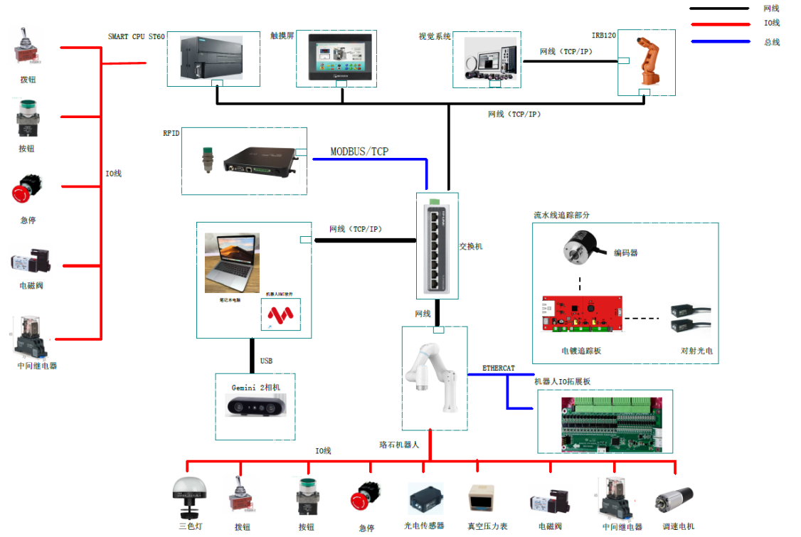智能制造設(shè)備技術(shù)應(yīng)用平臺(tái)取于工業(yè)應(yīng)用場景,里面主要元件如工業(yè)機(jī)器人、協(xié)作機(jī)器人、鎖螺絲工具、皮帶輸送單元等均來自實(shí)際應(yīng)用場景。