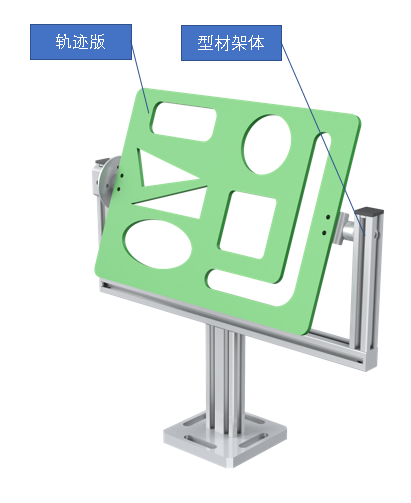 2D軌跡訓(xùn)練單元是將協(xié)作機(jī)器人對產(chǎn)品裝配前的涂膠工藝進(jìn)行功能抽象化,協(xié)作機(jī)器人抓持涂膠工具沿軌跡板上不同輪廓軌跡運(yùn)動(dòng),模擬涂膠工藝,軌跡板角度可調(diào),保證工藝真實(shí)性同時(shí)增加教學(xué)可行性和趣味性。配備發(fā)動(dòng)機(jī)模擬蓋板組件,實(shí)現(xiàn)定點(diǎn)位置處的軌跡訓(xùn)練如圖所示