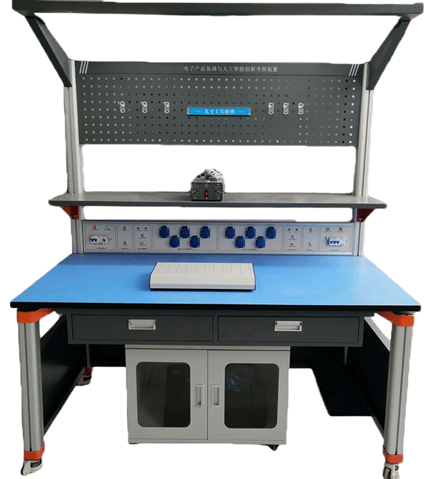 該設備主要由工作臺、實訓屏、實訓屏模塊、工具柜、儀器儀表、工具套件等組成。