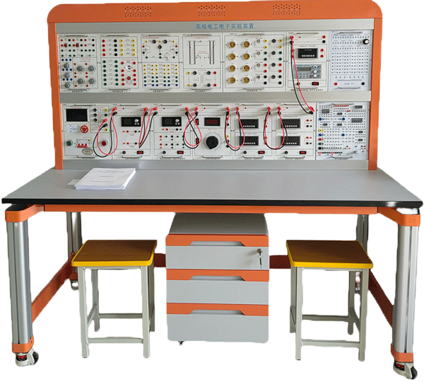 電工電子實驗平臺由實驗桌、實驗臺架、存儲柜、實驗掛箱組件、配件等組成。