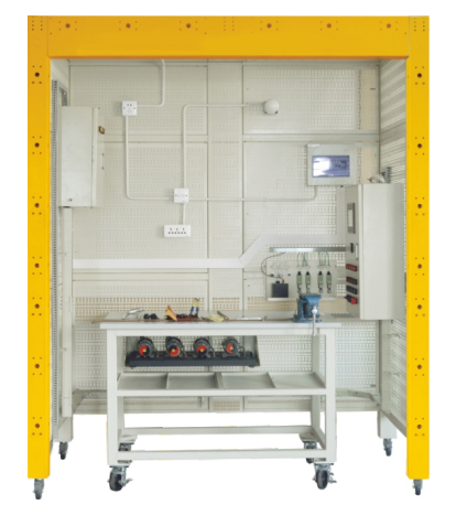 LGY-DQ06A型電氣安裝與維修實訓(xùn)考核裝置,可進(jìn)行電工安裝。如橋架安裝、PVC管安裝、白熾燈座、日光燈、開關(guān)、插座、配電箱、控制箱等,裝置還包含有交流異步電動機、直流電動機、步進(jìn)電機、伺服電機、溫度控制器、電偶、PLC、變頻器觸摸屏等控制與受控對象。該系統(tǒng)每個操作組配套一可移動式工具車和元件柜,便于對元件的保管和安裝施工。從根本上解決了學(xué)校在普通墻面上進(jìn)行的安裝培訓(xùn)的使用不方便、實訓(xùn)范圍窄的問題。