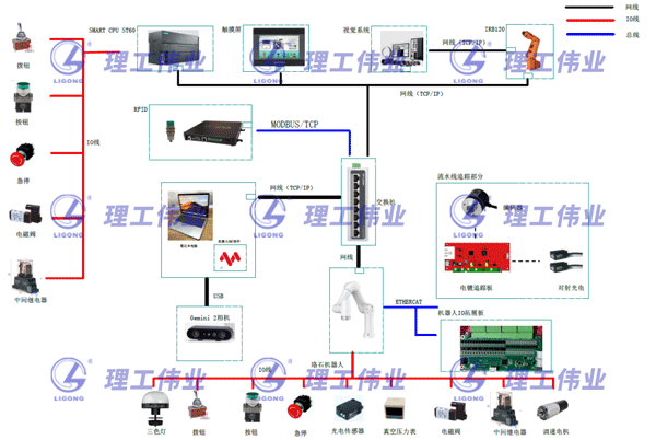 此款設(shè)備既可滿足學(xué)校針對(duì)機(jī)器人教學(xué)功能的要求,也可完成機(jī)器視覺的功能教學(xué)。設(shè)備體現(xiàn)了智能控制的基本概念,為后續(xù)要推廣的智能控制及智能制造兩大領(lǐng)域有很好的理解和影響力。下圖展示了各單元組成。