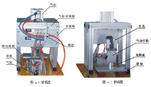 該配置配有多種類型的氣缸、電磁閥,磁性開(kāi)關(guān),如:?jiǎn)纬鰲U氣缸、單出雙桿氣缸、旋轉(zhuǎn)氣缸等氣動(dòng)執(zhí)行元件、單控電磁閥、雙控電磁閥和磁性開(kāi)關(guān)等,基于這些氣動(dòng)控制元件,可完成下列氣動(dòng)技術(shù)的安裝調(diào)試訓(xùn)練任務(wù):
