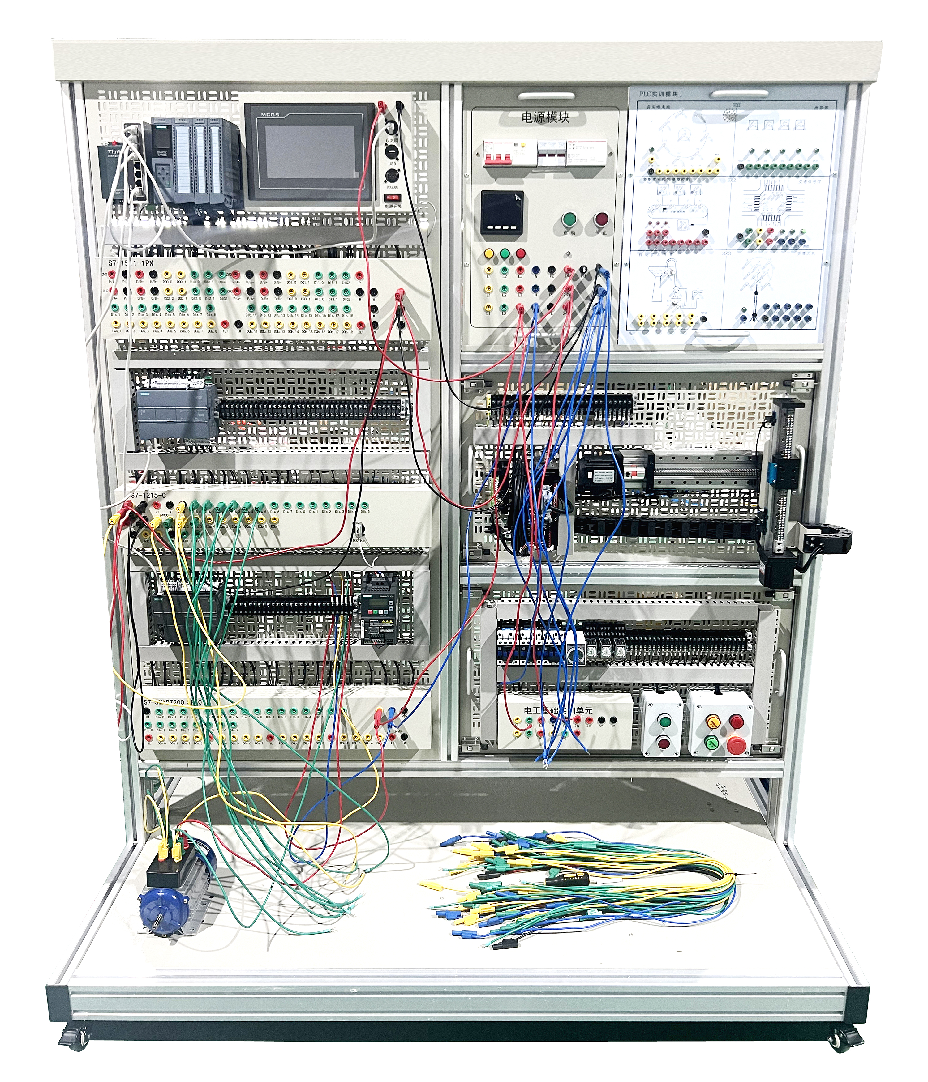 3. 采用模塊組合式結(jié)構(gòu),含開(kāi)關(guān)量、模擬量、變頻調(diào)速、觸摸屏、通信模塊等,配套工控組態(tài)監(jiān)控軟件,實(shí)現(xiàn)仿真化、信息化實(shí)訓(xùn)教學(xué)。