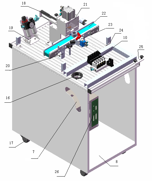 該系統(tǒng)的各站是安裝在帶槽的鋁型板上,各站可容易的連接在一起組成一條自動(dòng)加工生產(chǎn)線(xiàn)。站內(nèi)由各種模塊化形式構(gòu)成,各模塊之間易于搭建、拆卸和維護(hù),各工作站之間可隨意組合。