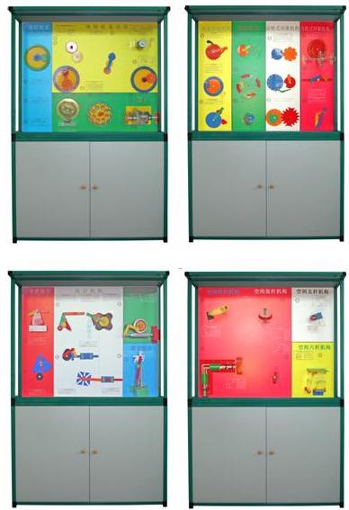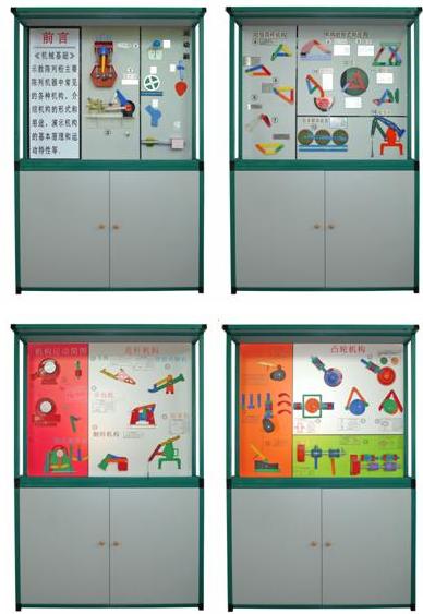 本設(shè)備是根據(jù)大中專院校、職業(yè)學校的教學大綱設(shè)計的機械陳列柜,《機械基礎(chǔ)》電化教學設(shè)備。陳列柜共分十個柜和一個電腦控制臺,進行多媒體聲控同步解說演示。由PC機電腦控制順序或任選運行每個柜模型動作,同時電腦播放圖像或三維動畫同步模型動作。