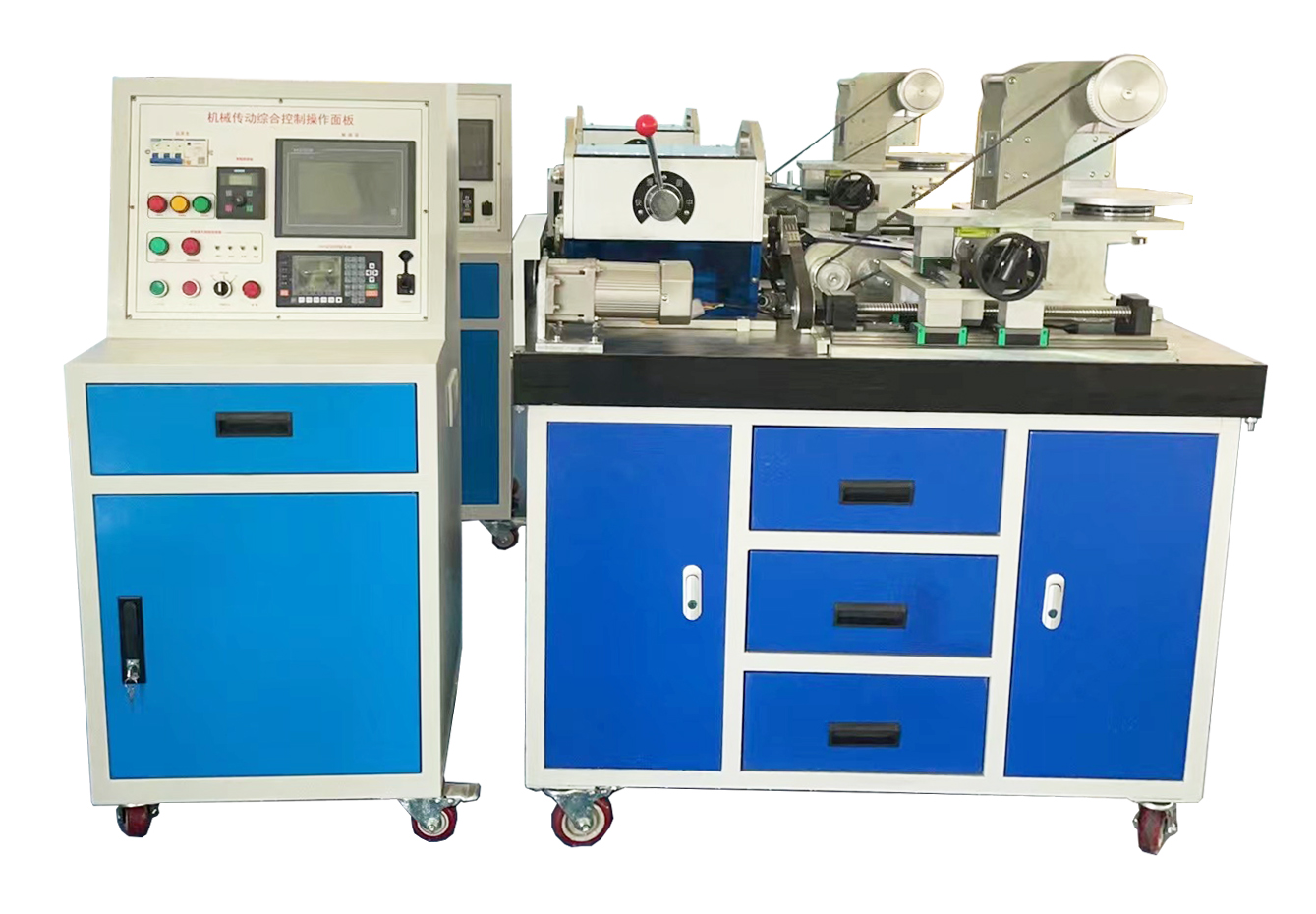 1.實訓臺:采用鐵質雙層亞光密紋噴塑結構。機械裝調區(qū)域采用鑄件操作臺面,學生可在上面安裝和調整各種機械機構。