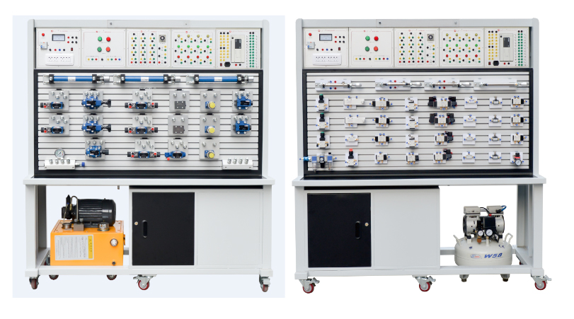 該實訓裝備覆蓋了氣壓傳動、液壓傳動、傳動繼電器控制、PLC自動控制、傳感器應用技術等多個技術領域 。是氣壓傳動技術、液壓傳動技術和各種現(xiàn)代控制技術的組合體。加上該實訓采用雙面工作臺結構設計,一個實訓裝備可供兩組學生同時進行各自不同的實訓,大大的提高了實訓設備的使用效率,并有效的利用了實訓室空間。
