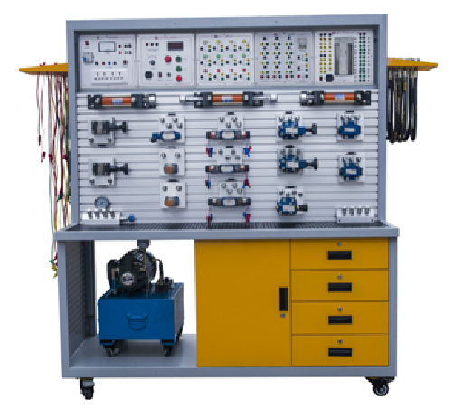 LGY-YC01A型液壓傳動綜合實訓(xùn)裝備是由實訓(xùn)臺桌、液壓元件、液壓動力源、電氣控制部分、PLC等五大部分組成;實訓(xùn)臺桌最上方為電氣模塊區(qū)包含電源模塊、油泵控制模塊、按鈕模塊、繼電器模塊和PLC模塊通過模塊式組合布局更加靈活方便,也可根據(jù)自己所需增減模塊來升級設(shè)備;實訓(xùn)臺桌中間是實驗、實訓(xùn)區(qū),是由帶T型的型材組成,根據(jù)液壓實訓(xùn)回路,所有液壓元件可方便的在實訓(xùn)面板上自由搭建;實訓(xùn)臺桌下方為工具柜和液壓源置放處,可為液壓系統(tǒng)提供必要的液壓動力源;液壓元件采用力士樂技術(shù)的液壓元件,質(zhì)量可靠,性能穩(wěn)定,所有液壓元件閥板底部安裝一種塑料快換底板,可方便的在實訓(xùn)區(qū)的任何區(qū)域快速搭建,安裝一個液壓回路只需5分鐘左右,快速高效!通過實訓(xùn)教學(xué)活動改設(shè)備可學(xué)習(xí)到液壓傳動、傳動繼電器控制、PLC自動控制、傳感器應(yīng)用技術(shù)等多個技術(shù)!