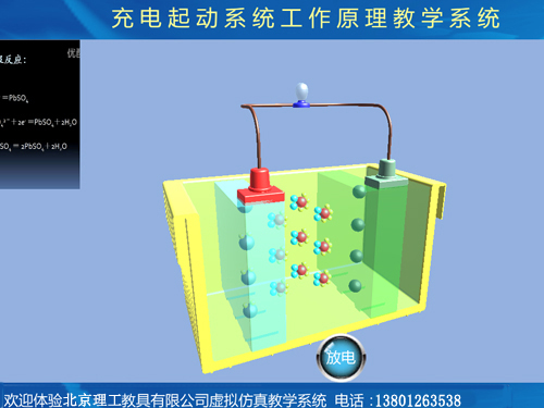 電池化學(xué)工作原理演示:在3D環(huán)境下搭建電池化學(xué)反應(yīng)3d模型,動(dòng)態(tài)演示充放電變化學(xué)反應(yīng)過(guò)程,包含鉛酸電池、鎳氫電池,鋰電池等;