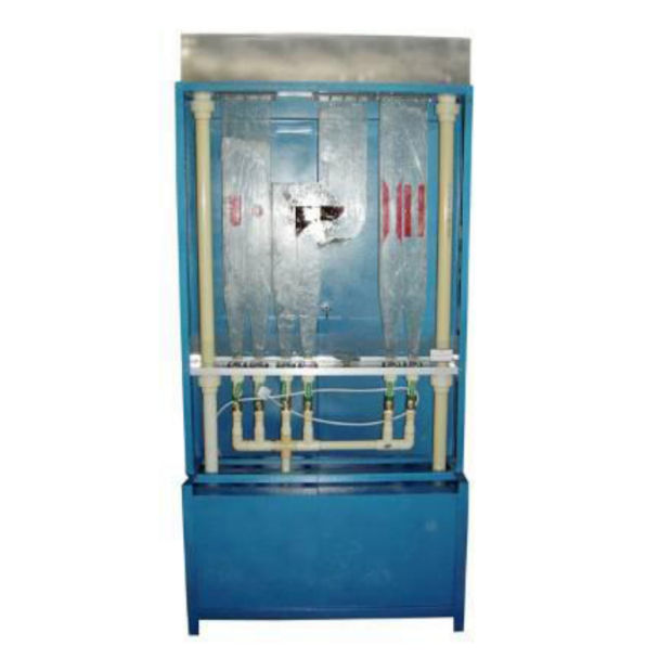 演示流體流經(jīng)橋墩、圓柱體、直角彎道、圓角彎道和突縮、突擴及漸縮、漸擴管道時漩渦區(qū)的變化,并可觀察到典型的卡門漩渦。