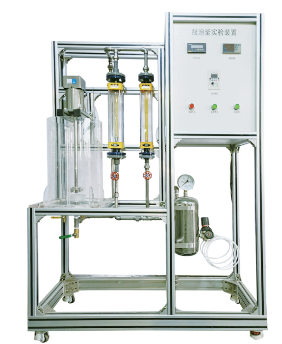 鼓泡釜、空壓機(jī)、流量計、攪拌器、氣體分布器、調(diào)速電機(jī)、變頻器、空氣緩沖罐、氣體調(diào)壓閥、數(shù)字顯示儀表、高品質(zhì)鋁合金型材框架。
