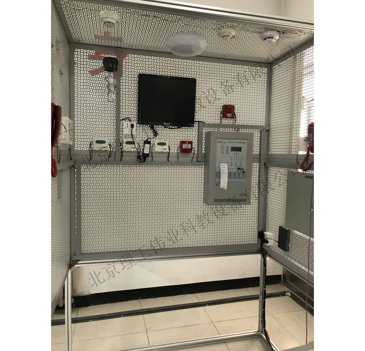 LG-XBX01型 消防探測(cè)器及布線實(shí)訓(xùn)系統(tǒng)采用實(shí)訓(xùn)操作區(qū)主要針對(duì)以上消防設(shè)備操作實(shí)訓(xùn)動(dòng)手實(shí)踐,操作間采用工業(yè)鋁型材結(jié)構(gòu)支架,實(shí)訓(xùn)間干墻面采用為全鋼網(wǎng)孔板結(jié)構(gòu),設(shè)備內(nèi)外無(wú)任何木板、輕型材料等輔助材料。使其利于延長(zhǎng)使用壽命和無(wú)需后期更換耗材,真正實(shí)現(xiàn)裝置免維護(hù)。模擬墻采用模塊化設(shè)計(jì)可單獨(dú)拆卸任意一塊墻面進(jìn)行維護(hù)。LG-XBX01型 消防探測(cè)器及布線實(shí)訓(xùn)系統(tǒng)整體采用冷軋鋼網(wǎng)孔板,表面平整,不設(shè)任何凹槽結(jié)構(gòu)??紤]學(xué)生實(shí)訓(xùn)沖擊因素,厚度≥1.8mm,若厚度不能達(dá)到要求,每個(gè)實(shí)訓(xùn)區(qū)的墻面網(wǎng)孔距5*30毫米,便于安裝實(shí)訓(xùn)器件。